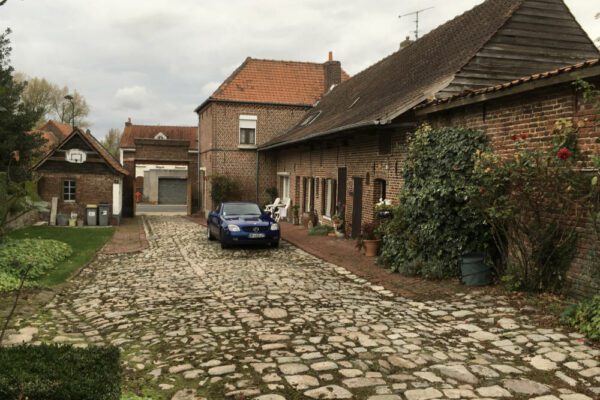 A Vendin-les-Béthune : ancienne ferme labellisée Fondation du patrimoine, transformation des étables pour un habitat partagé. Matériaux éco durables : torchis, enduits terre, eau, paille…