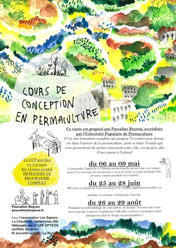 Ce cours, dont le contenu a été défini par les fondateurs de la Permaculture (Bill Mollison et David Holmgren), couvre sur 72h l’ensemble des fondamentaux permettant de poursuivre sa transition, en dessinant son propre parcours.