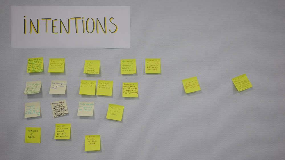 Julia Mendes, facilitatrice, mais aussi habitante des Cabanes Inspirées à Potelle, a animé cette première journée dans les locaux de la MRES. Le thème de la journée : « la clarification et la définition de son projet participatif ».